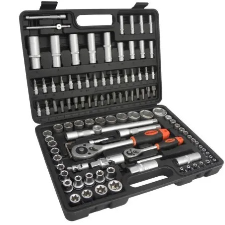 Hatszögletű dugókulcsokkal, torx-szal, racsnikkal, hosszabbítókkal és bitekkel, 108 darabos készlet