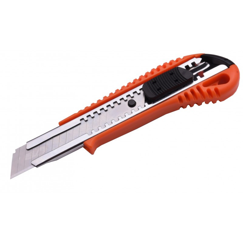 Kiváló minőségű műanyag házas kés. Fémmegvezetésnek köszönhető biztonságos pengetartás erős nyomás esetén is. 1 db pengével szállítva.